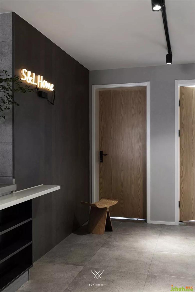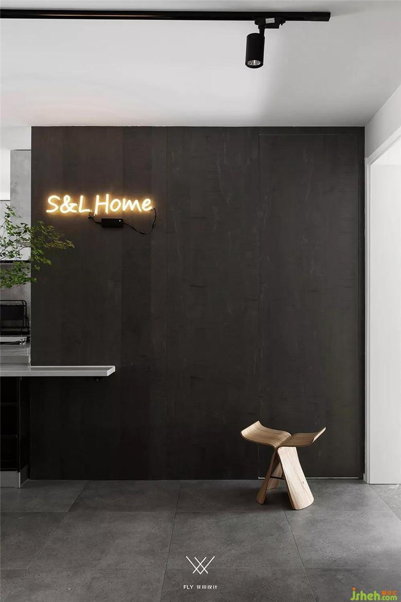 卫生间隐形处理,以木饰面覆以整面墙,解决入门即厕的问题,统一的区域与孙先生、卢女士之家"S&L Home"的装点隽雅温馨。延续餐厨的笔触,台面穿插到玄关背景,增强区域层次感。
