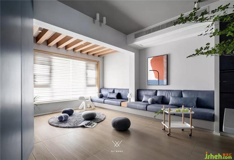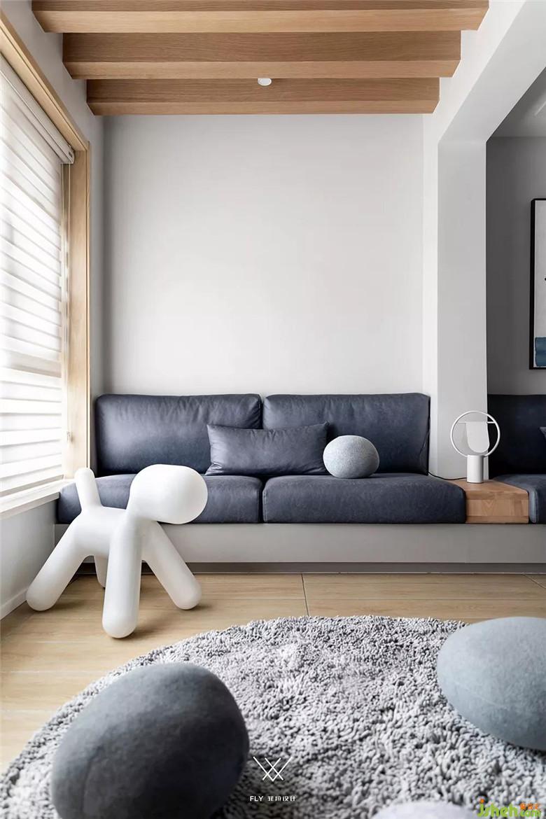 纳入客厅后的阳台梁过于突兀,在原阳台做装饰结构梁,弱化处理达到空间配比的合理性,整个客厅更加和谐归一。