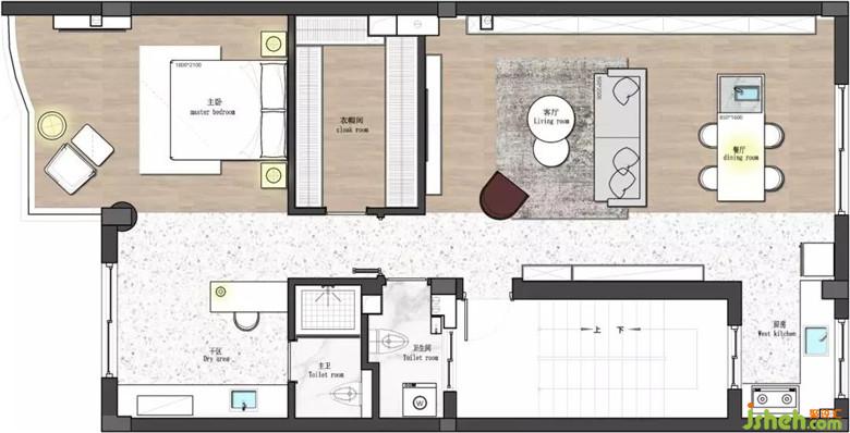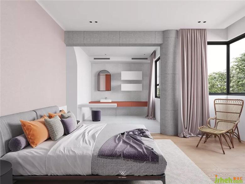 屋主在前期咨询时就希望卫生间的规划上融入日式的四室分离,做干湿分离区。把洗手台的功能多形式结合,融合洗手台收纳柜以及原水管包圆柱,大梁形式结构美感。