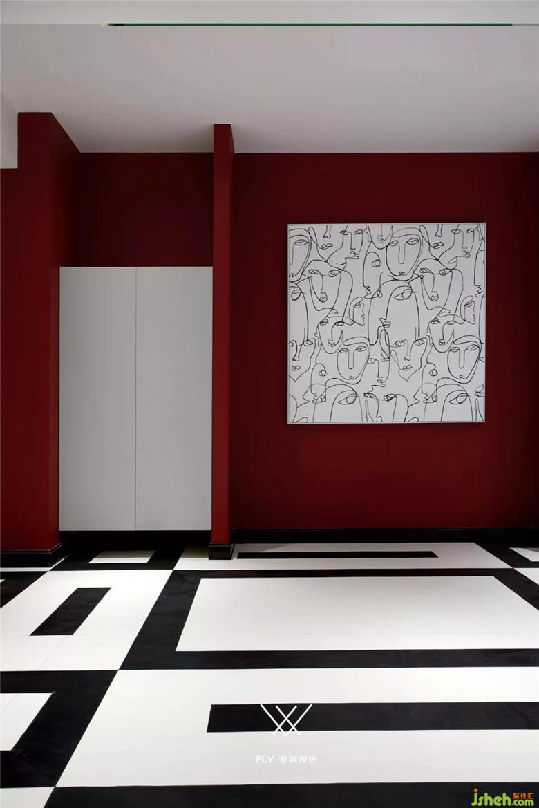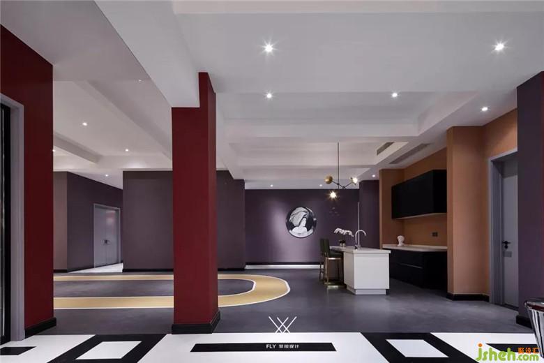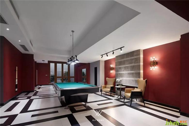 整个地下室用了强烈的色彩进行激烈碰撞,能激发人的荷尔蒙让人保持持久活力,而且具有非常强的娱乐感。台球室和健身区靠近天井位置,能保证一定的通风采光效果,两个功能划分明确但区域过度自然没有明显的分界,使得空间整体统一。黑白几何图案的地面设计让空间非常摩登时尚。