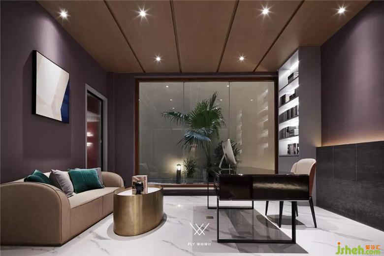 采光最好,窗户最大的空间布置了一个接待性的书房,在书桌位置能一眼看到30m的跑道和健身活动空间,空间之间能起到互动的效果。