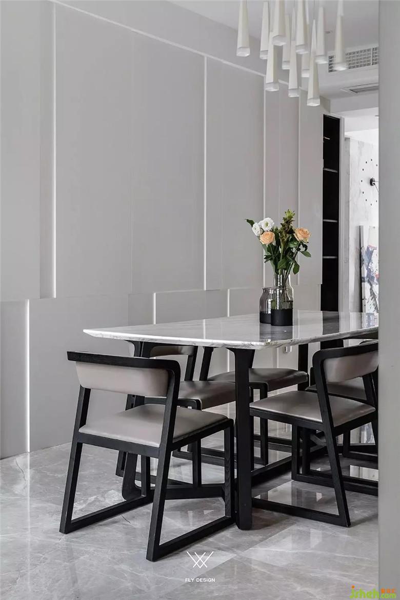 带着这样的目的,重新调整了空间的比例,纳原阳台于客厅区,设备阳台于餐厅区。强调轴线关系,是公共空间的延续,让连接更流畅。