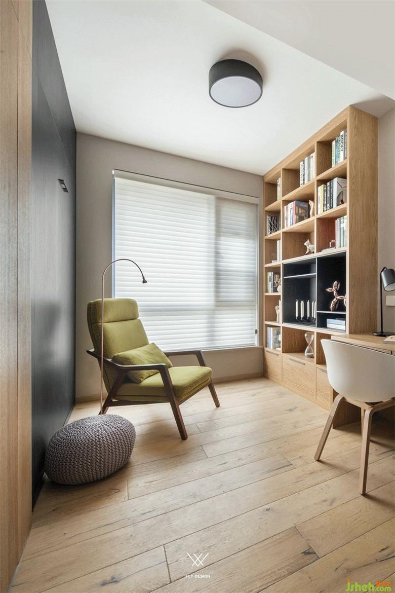 首先是主卧套间的功能细化,因为屋主喜欢阅读,所以可能随时都希望有一个阅读的空间,设计师在主卧空间以及公共空间都为屋主设计了开敞式书房,抓住屋主每个瞬间的灵感。