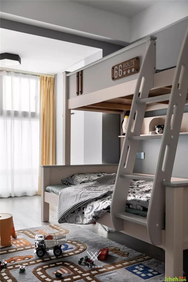 睡眠区都在二楼,装修公司在保证三个卧室的前提下,还在卧室增加了衣帽间,以及公共空间的置物柜。
