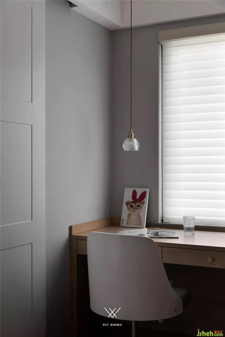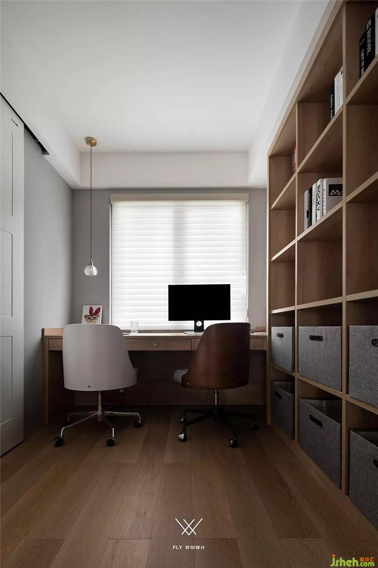 书房朝客餐厅的门是对开的玻璃门,书房即使关着的时候也不影响南面窗户的光线进入客厅,又能保证相对的私密性。