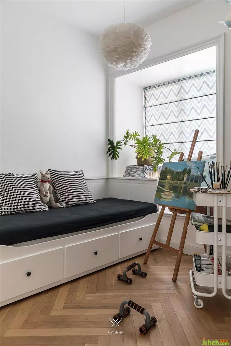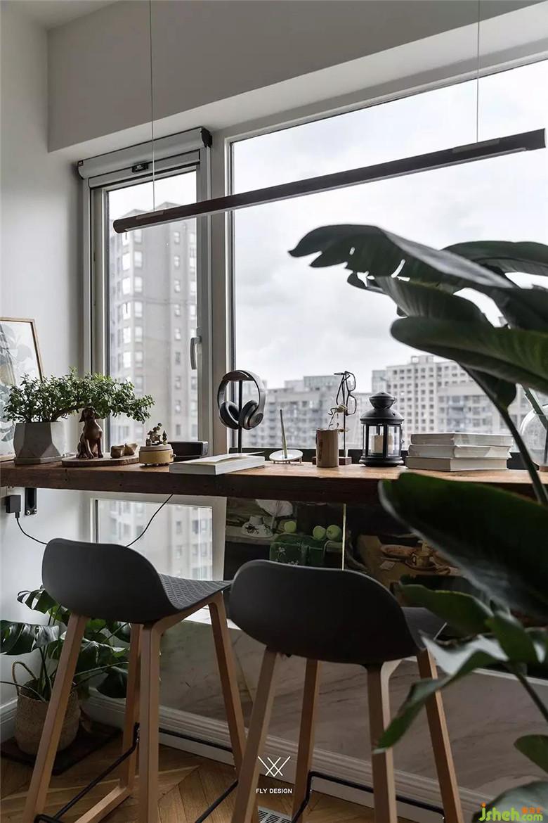 装修公司在餐厅窗边做了休闲吧台兼书桌,桌板是用老原木自己Diy的,坐在这儿,耳边响起轻快的音乐,看着喜欢的书,这将是多么美妙。从这里跨过餐厅,走入客厅,到达阳台,地面传来的是丝丝暖意,也许这就是幸福的感觉。