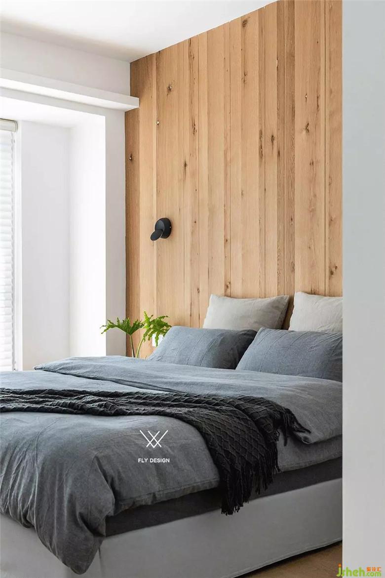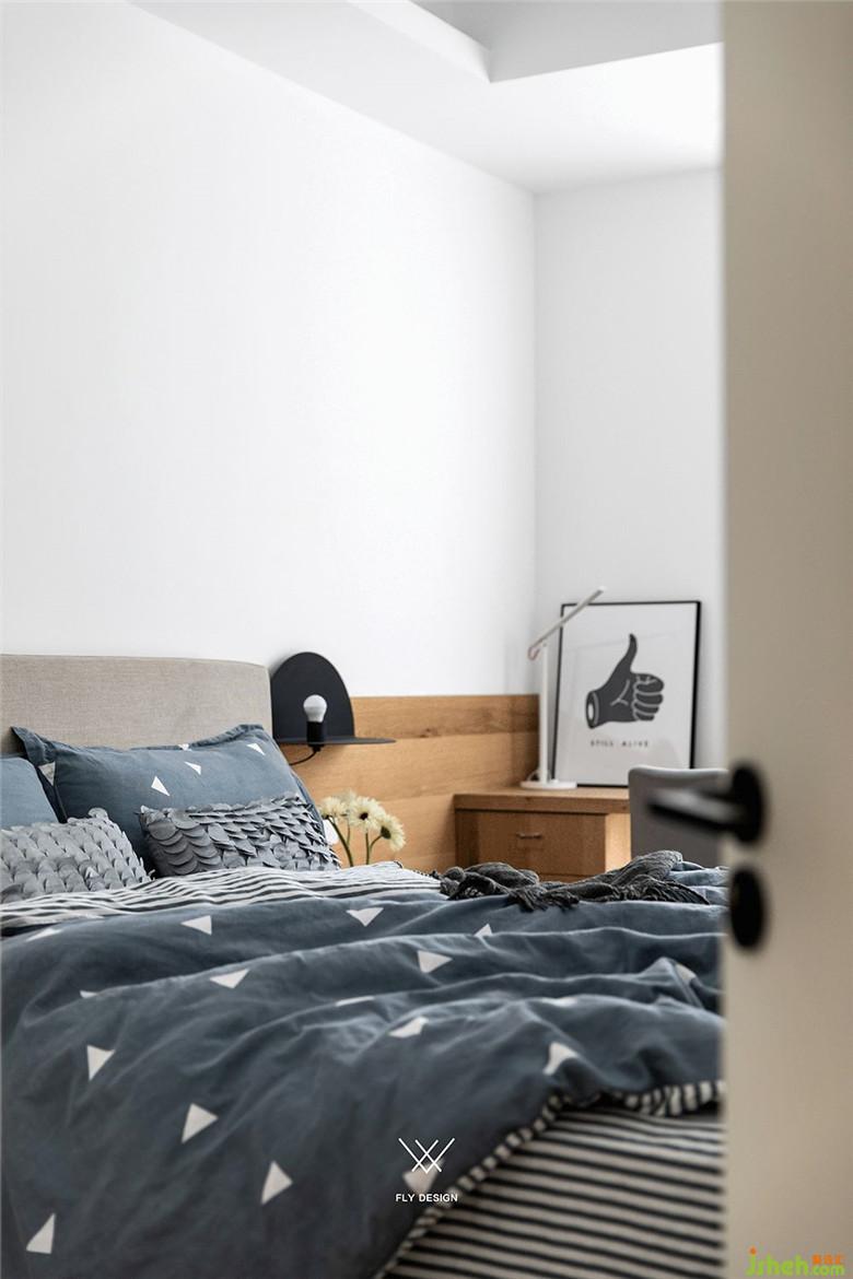 木头做成的床头和装饰画使屋子酷起来,床头柜上的摆件与整个空间一起生出流行艺术氛围。
