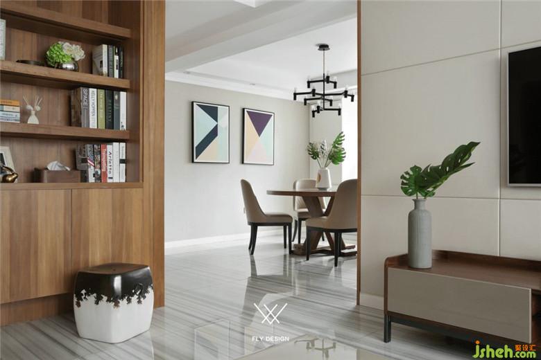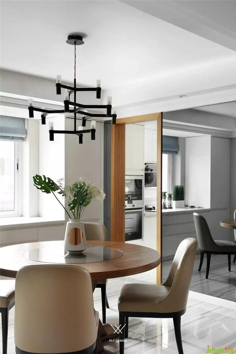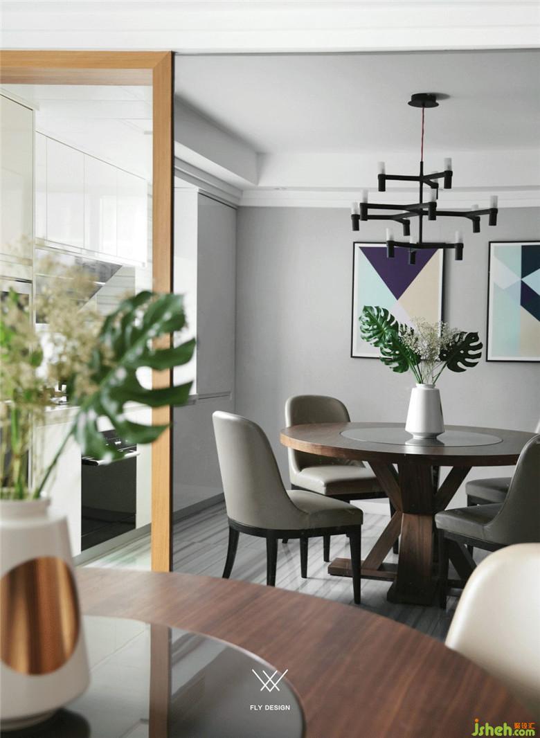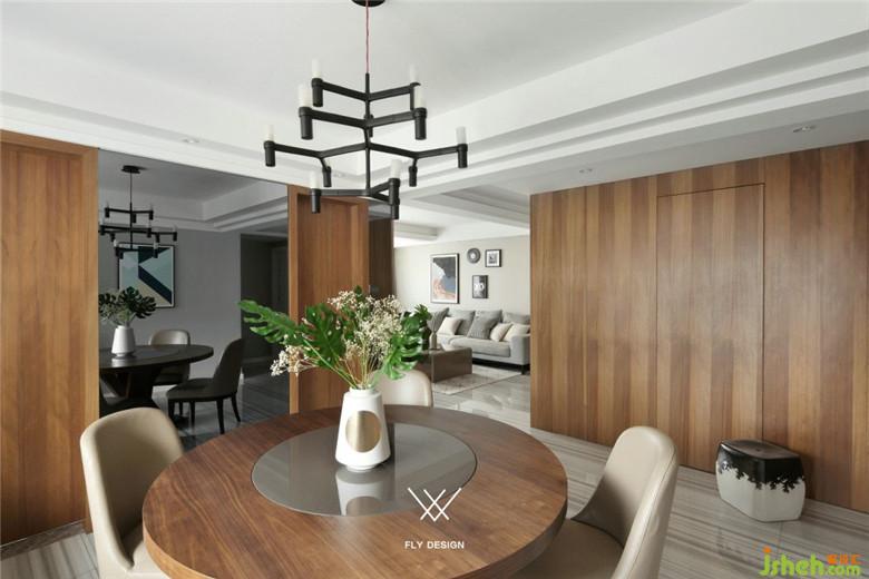 餐厅两侧的墙面棕色较多,棕白之中又点缀白黑,互相对立又互相融合,简约的风格下沉淀质感,装修公司让餐厅的光线更趋于柔和。