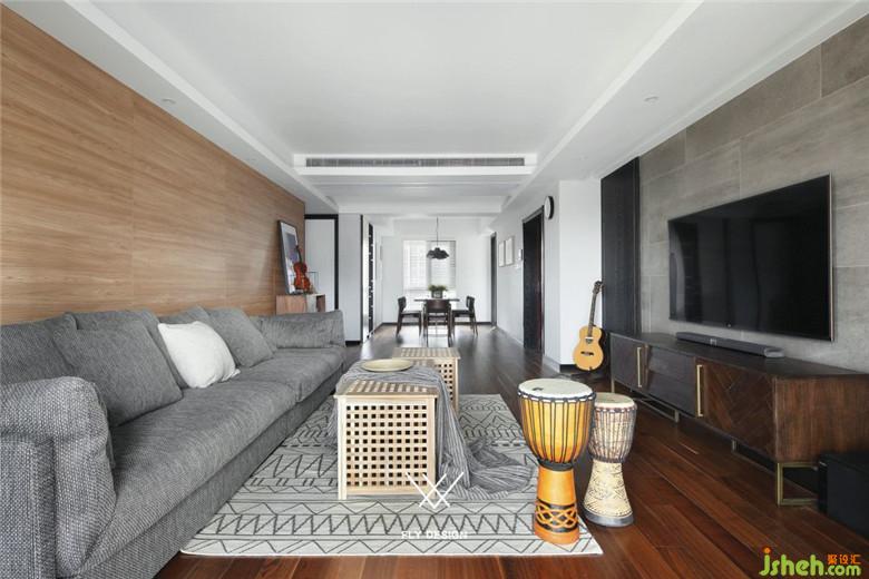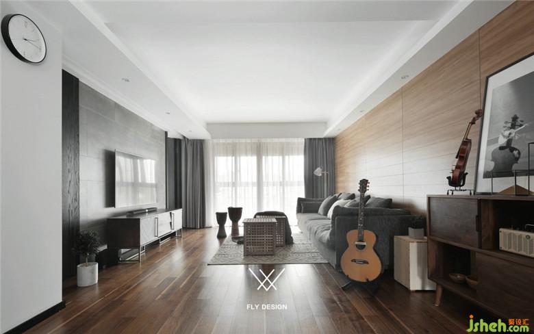 客餐厅把阳台打通更加透亮大气,软装采用了现代的,内外分色也是为了能增加其丰富度。现场木色地板和整个空间的墙面完美融合。