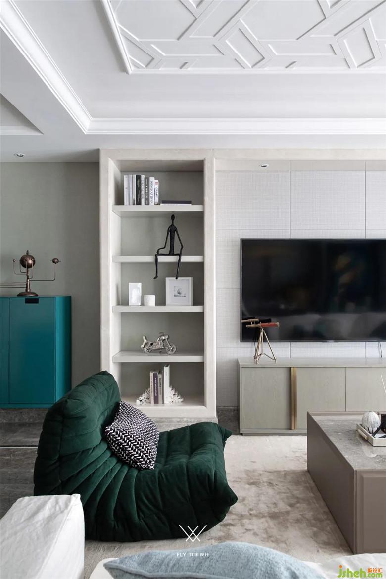 业主喜欢墨绿、灰绿、灰、金属等色彩,所以选择与之相近并融合原本色调,而且装修公司使用暗橘色来提亮空间。、