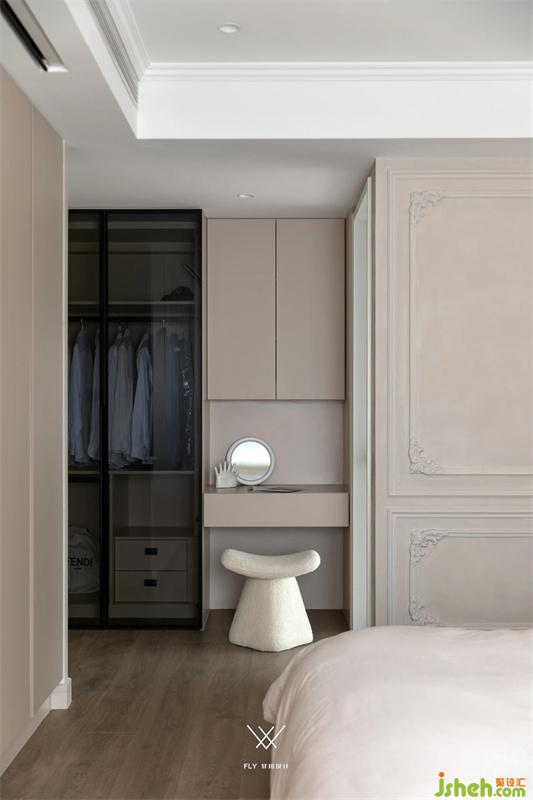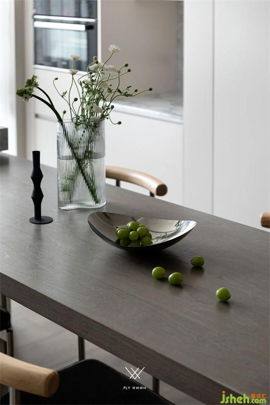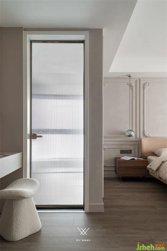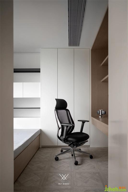 元素细节化的点到为止,代入男业主喜爱的金属元素,装修设计在把手、在扣条处、在那隐约的小空间里。