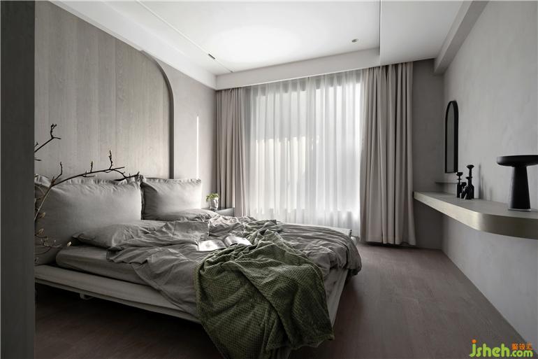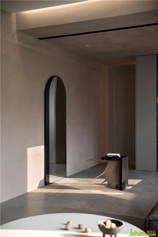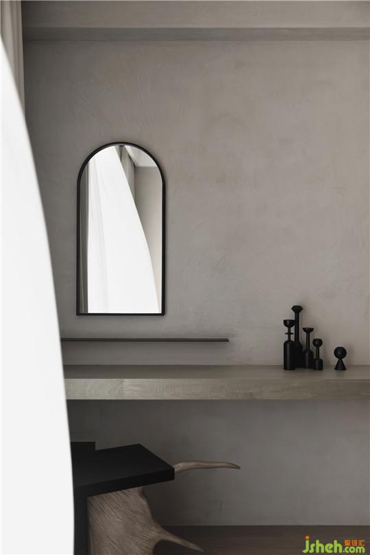 杭州家居设计粗犷的微水泥墙面,硬朗的材料与色彩,纱帘在风中徐徐飘动,朴实雅致的氛围下尤显宁静安然,仿佛静止了时光。