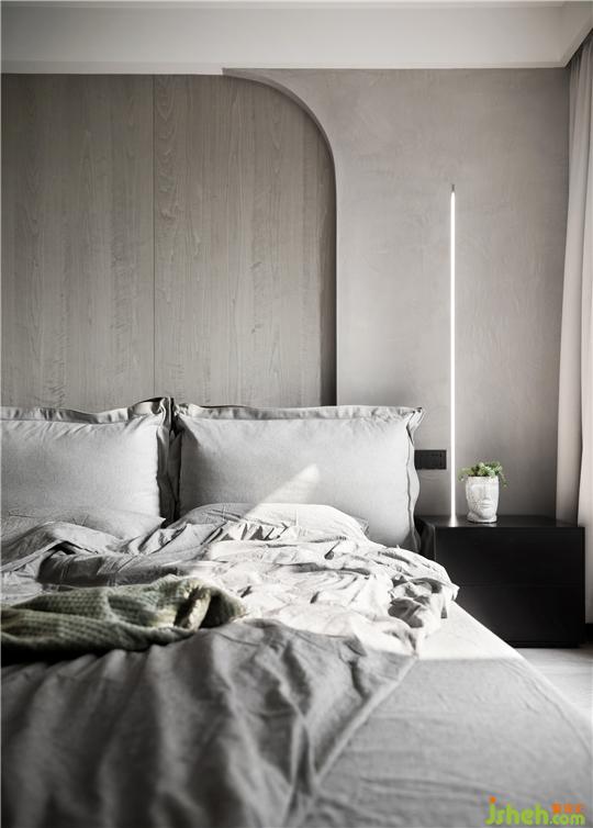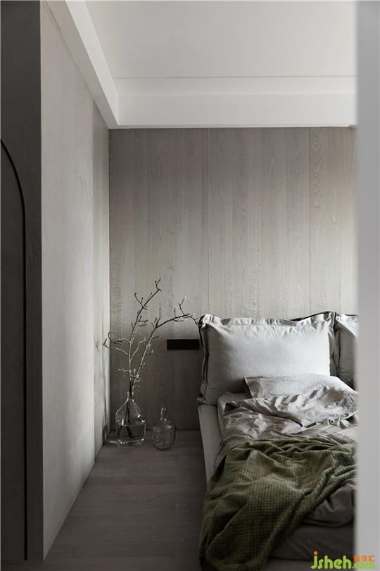 木饰面、棉质床品、艺术涂料等贴近自然的材质与色彩,在空间中营造温润素净的面貌。