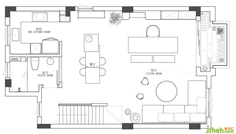 居住者要求家里动静区域明确,动区规划在一楼,二楼是睡眠区。