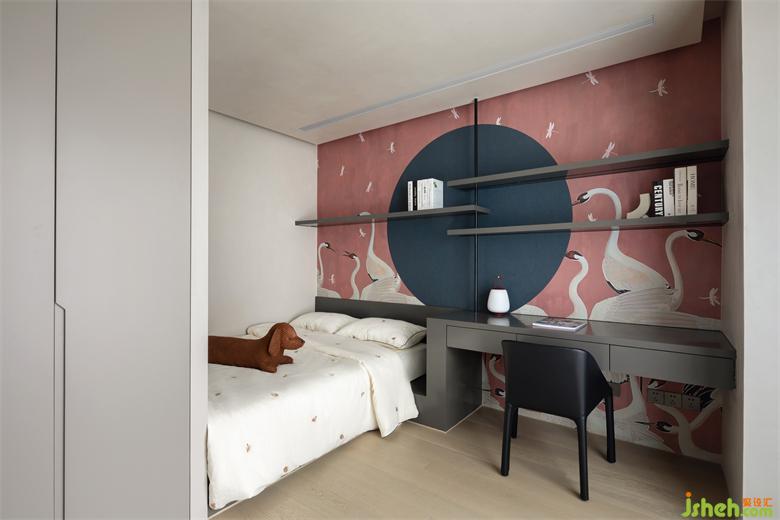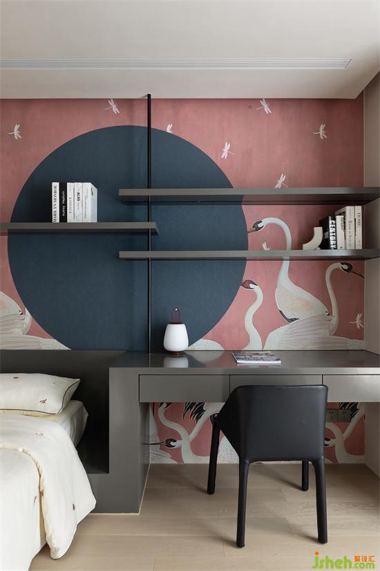 书桌兼具床头柜功能与床头室内设计师靠背一体生成
