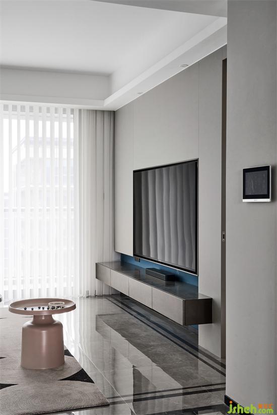Coordinate the function with the integrity of the block, and embed the TV in the wood facing shape of the精装房改造TV background; The embedded drawer cabinet replaces the floor TV cabinet to reduce the redundant sense of vision and release space.