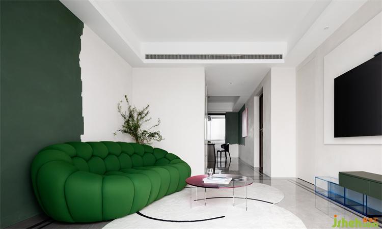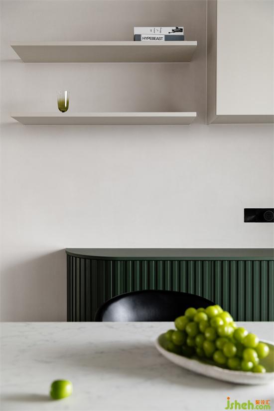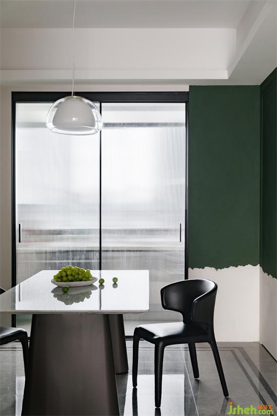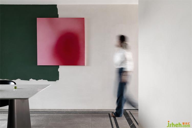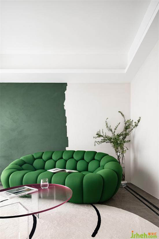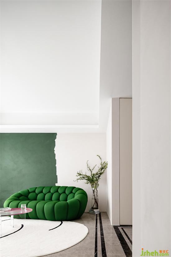 汇港城精装房改造纯粹的空间与色彩的交汇言语,同一区域绿的颜色进阶,感受色彩的流动变化,冲破各自为营的束缚,纷繁诗意流转蔓延。
