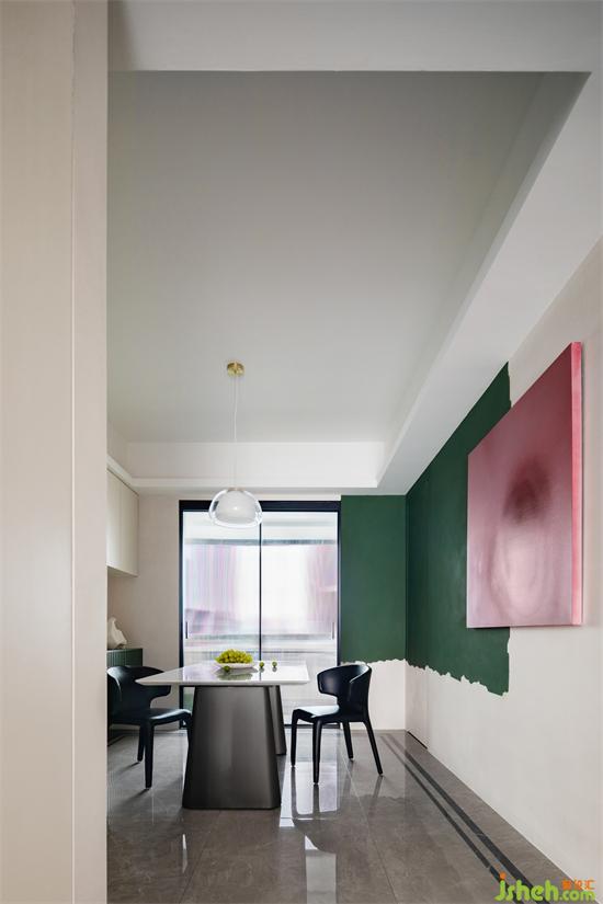汇港城精装房改造有限空间里探讨色彩与空间功能结构的复合性、装饰性与趣味性。