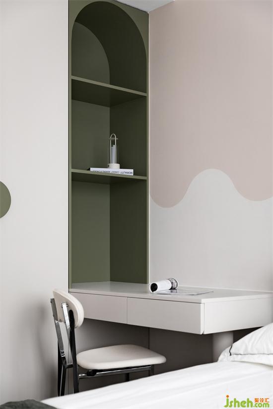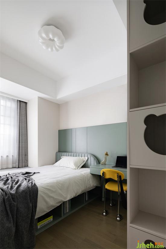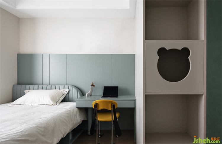 汇港城精装房改造色彩与几何元素的一场童趣聚会,睡眠空间的温柔烂漫,两间儿童房各有其言。