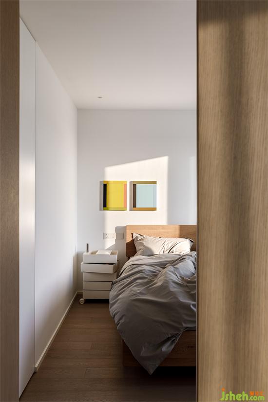 感知生活中的诗意与温柔,双开门形式打造家居生活的仪式感;卧室顶面结构的融合过渡,杭州臻蓝府家装设计以造型的自然婉转重塑功能构件的展现形式。