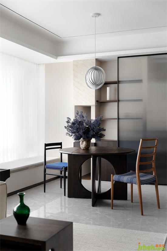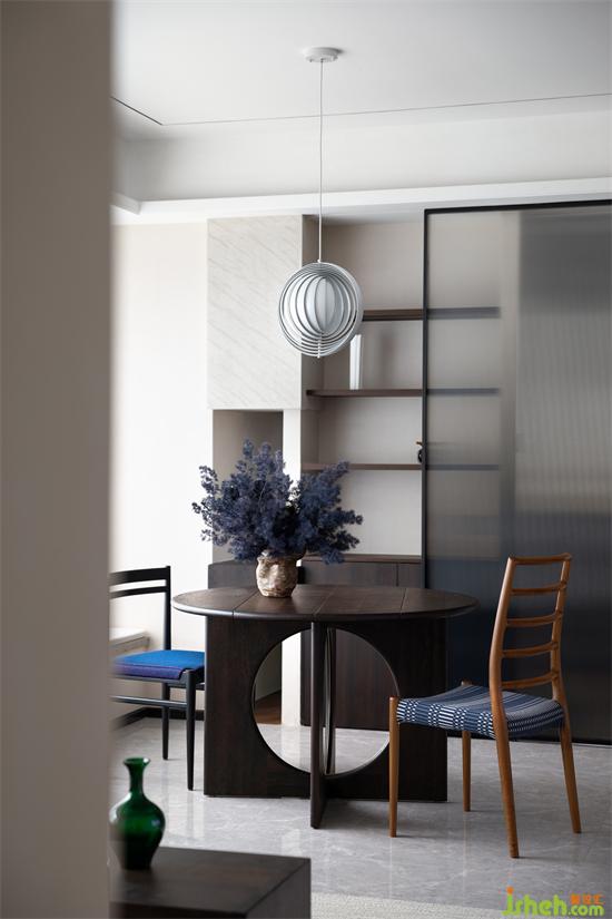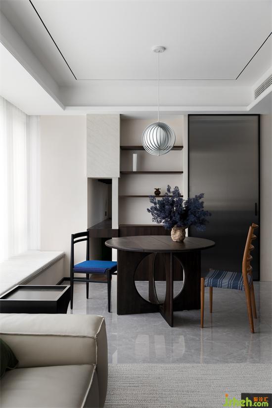 一日三餐的烟火与这醇厚的就餐氛围,两人的生活悠然而雅致,各有千秋的餐桌餐椅有着形体的互补,杭州云悦湾精装房改造章法有致的搭配感受餐厅的意韵迭起。