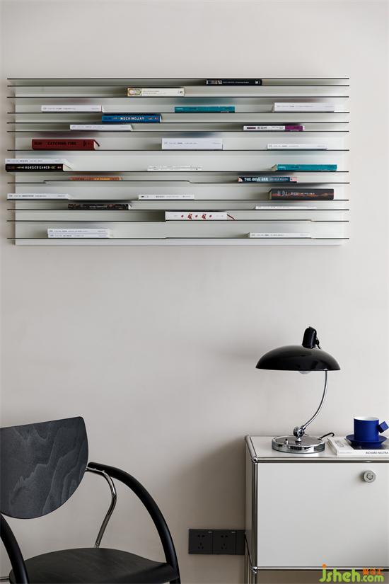 原本北向的卧室改成与客厅连通的书房,房门以玻璃推拉门形式拉近区域间的互动,一旁内嵌柜体作为餐厨区的收纳补充。