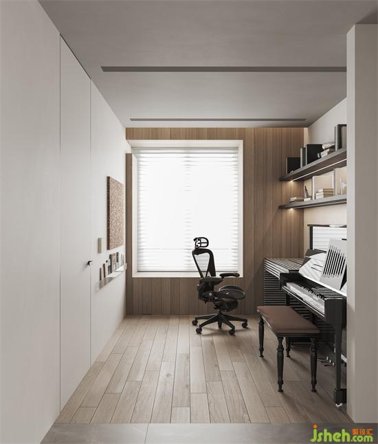 可调式格局总是可以增加平面空间运用上的灵活性,杭州晓风印月装修设计将原本局促的小房间做敞开式书房,区域的通透、光感的流动、过道的空间感都得以舒展。