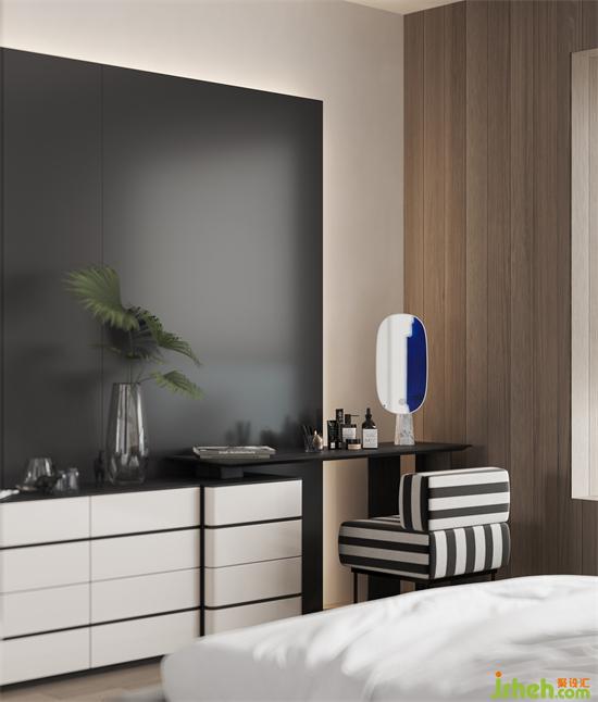 乐于解构线条和体块于空间之内的形态表达,主卧的床头背景造型包含着结构的趣味、材质的碰撞,杭州晓风印月装修设计以及色彩的暗暗呼应;睡眠空间的点到为止与休闲温润行进的恰到好处,沉沦于那克制表达的意犹未尽。