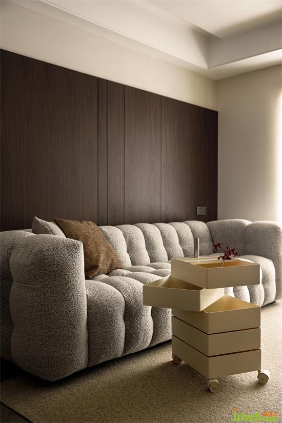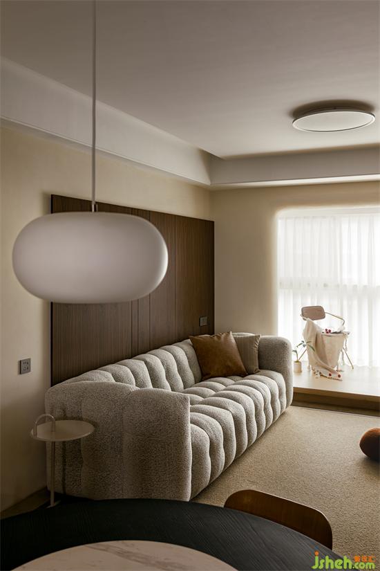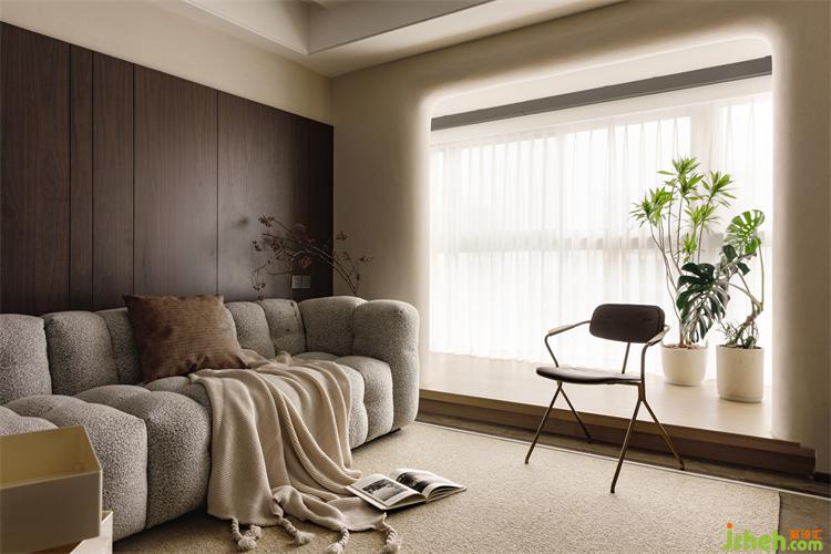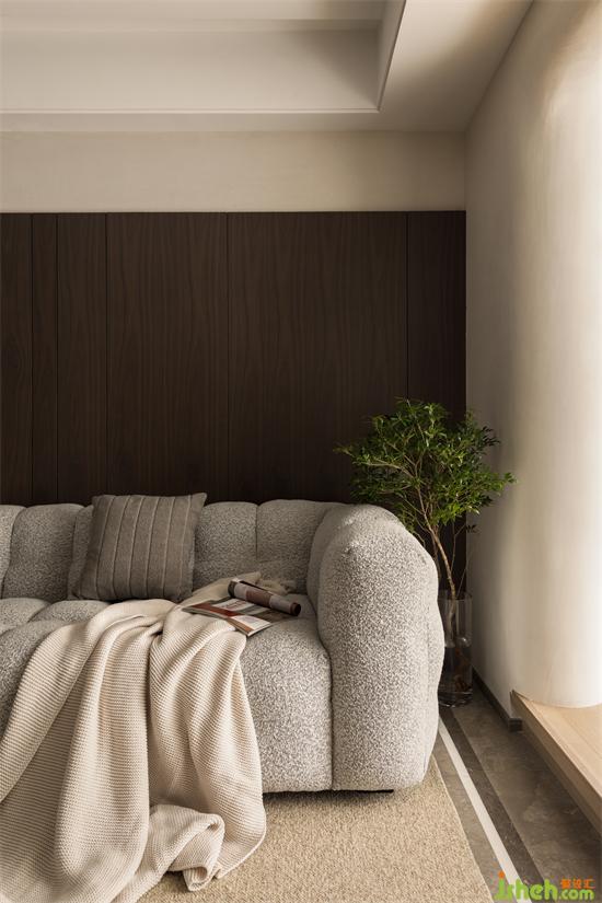 “居所”是私人的生活美感所在,点到为止的设计,杭州和宁文华府装修设计且得空间的静谧与柔和。阳台与客厅水平面上的高度差,满足女业主对地台氛围感的期许。