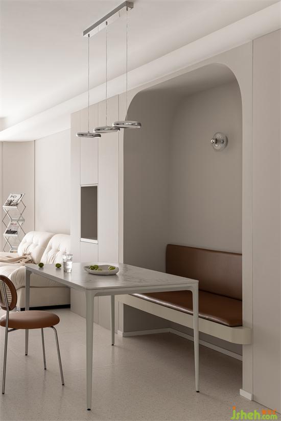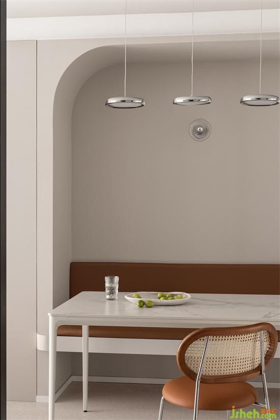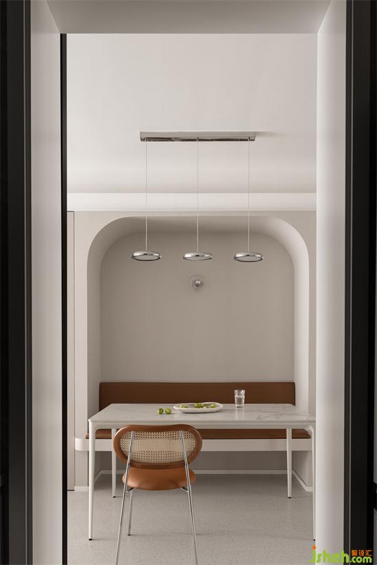让艺术有效地成为生活的有形载体,处理好不同功能需求之间的接洽与融合,综合衡量之下餐边柜与卡座相结合的餐厅形式,杭州金成英特尔湾装修设计多重角度思考的表现姿态,有着艺术作品的整体一致性魅力。