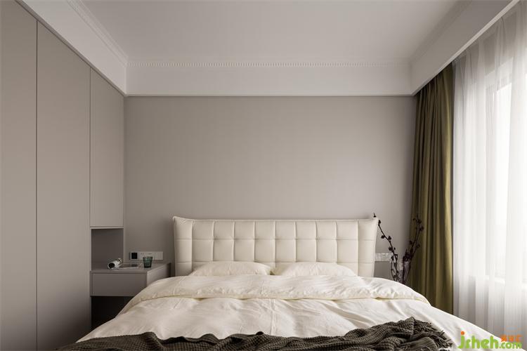 原睡眠空间相对狭小,杭州金成英特尔湾装修设计将阳台收入卧室让房间得以保持更舒适的状态,伴随着清浅温柔的空间色彩随之入梦。