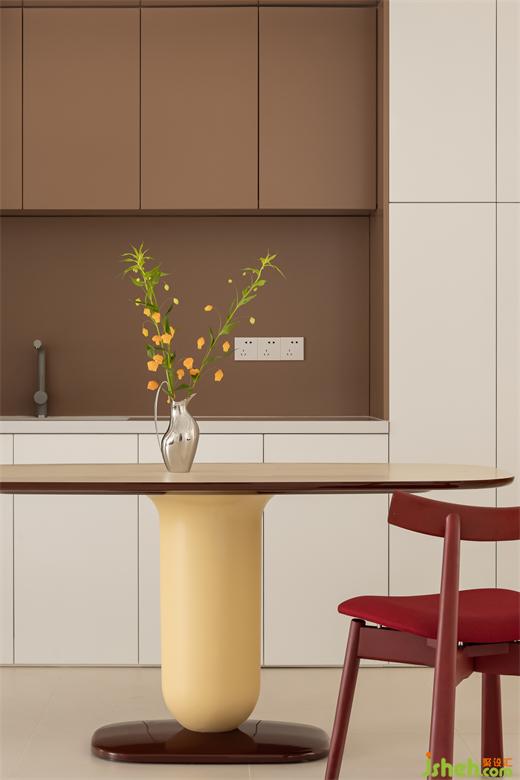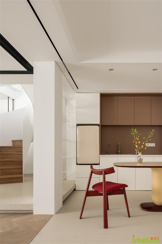 家居空间的展现形象来源于居者生活方式且随之而变,杭州西湖国际城跃层装修设计以人为本依需而行,完善当下空间的家居使命。餐厨区根据需求调配放置二楼,与建筑结构结合呈现有其特色的功能区,感受不同形态下的空间魅力。