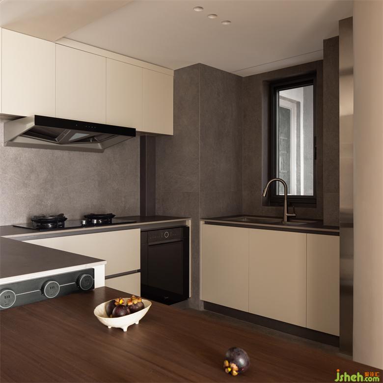 In the context of regional functions, the coherence of space and the transition between functions are naturally harmonious, blending functional and artistic senses. The kitchen area and one side of the sideboard, while maintaining their functional placement, pay attention to their overall sense of scale, the richness and jumping of detailed shapes, and provide a sense of breathing for large-scale tiled elements.