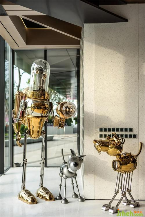 "艺术属于古老的世界,科学属于现代的世界。"设计师将艺术文化与潮流科技相融合,入口前厅以比利时艺术家stephane Halleux的蒸汽朋克艺术玩偶为序,融古汇今,拉开一场科技与艺术交流碰撞的感观盛宴。