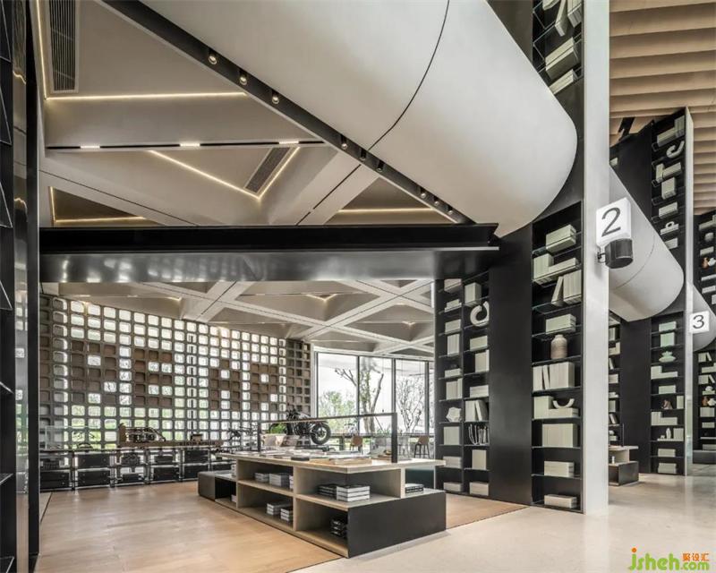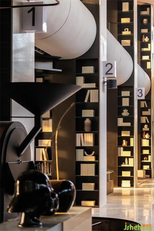 素白的大理石接待台则以极简的弧线打破横平竖直的空间线条,武汉售楼处设计与纸页艺术吊灯一同呼应着青菱书吧的艺术情景氛围。随日光洒下,一簇绿意蓬勃而出,更显自然之野趣。