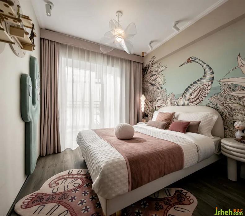 儿童房将无处不在的弧形引入房间,消除结构上的锐感,样板房设计再借不同低饱和度的颜色融入鲜活色调,渗透在每个角落的点滴童趣,让孩子房充满柔和温度。