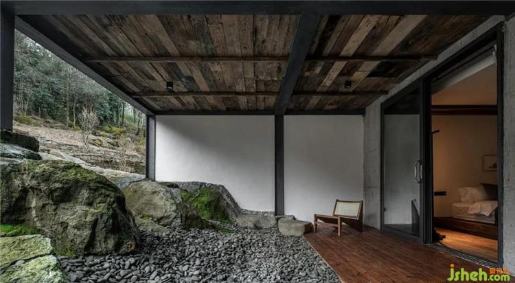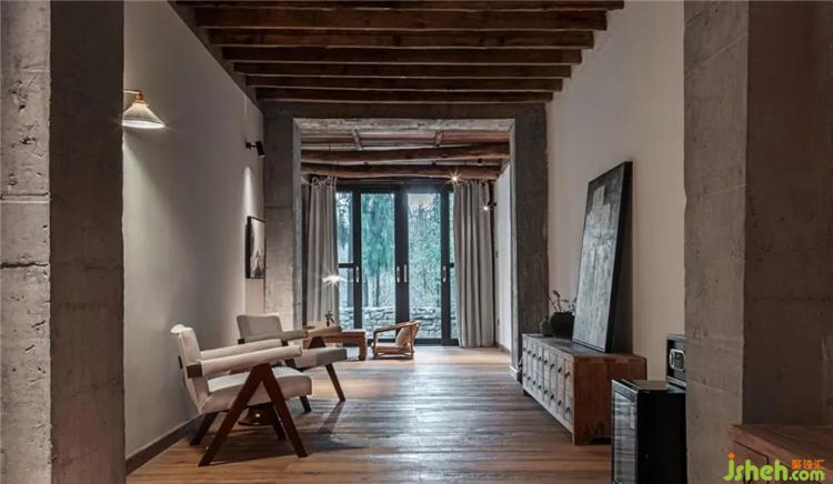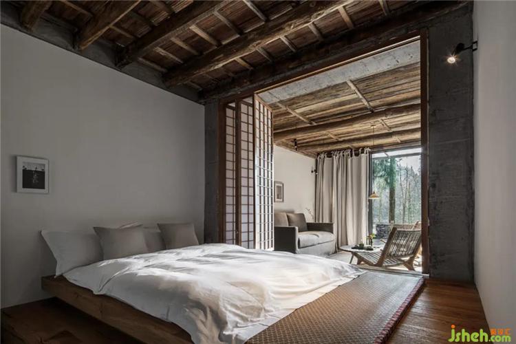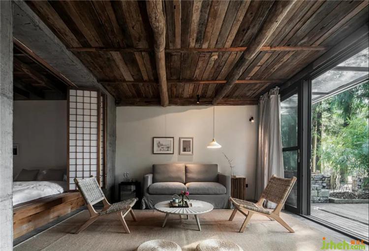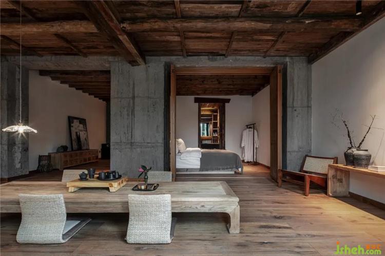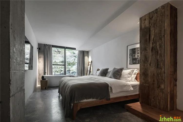 挑高的空间架构中,通过天花与墙面连续的设计,塑造出空间整体风格的延伸性,各个区域直接的转换自然而流畅,从而打破了常规民宿空间的形制特点与界分感,于简单中加以微妙的转折,呈现出空间简净大方的当代气息。