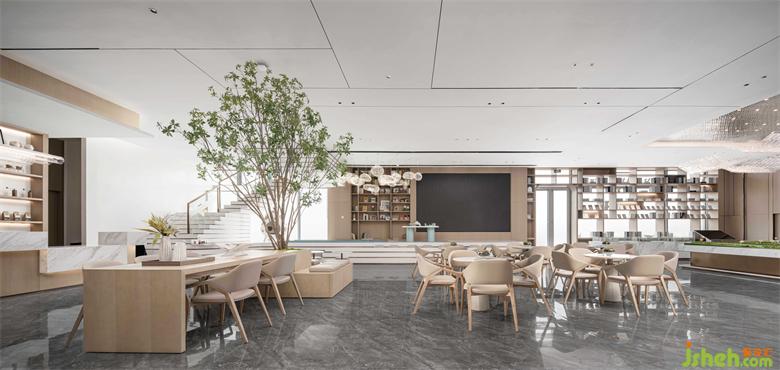 配以咖啡、美食所能带给人们味觉、嗅觉享受,生动的视觉与丰富的感知,售楼处设计引导我们在森林中探寻城市的生活美学。
