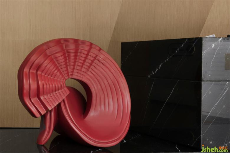 作品除了对形式及其变形的注重外,还特别注重“内爆”的概念。在作品《麦科马克》(McCormack)中,可以看到雕塑的重心有个地方有道缝,这是托尼刻意为之。在这里引用这个雕塑,柔美的曲线形式,大胆运用红色,表达重庆人民的热情好客。