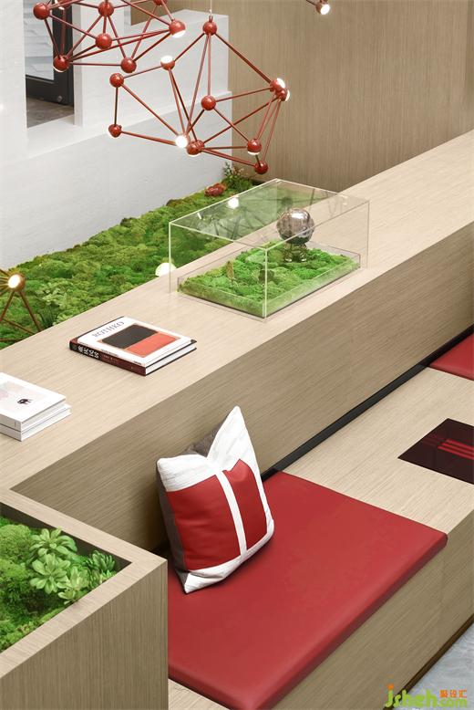 整个售房部由商铺改变而来,设计师从多面引自然光到室内,同时也要照顾到未有窗的空间,多重巧思汇集。