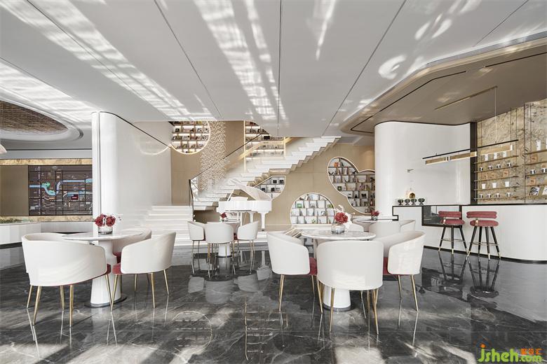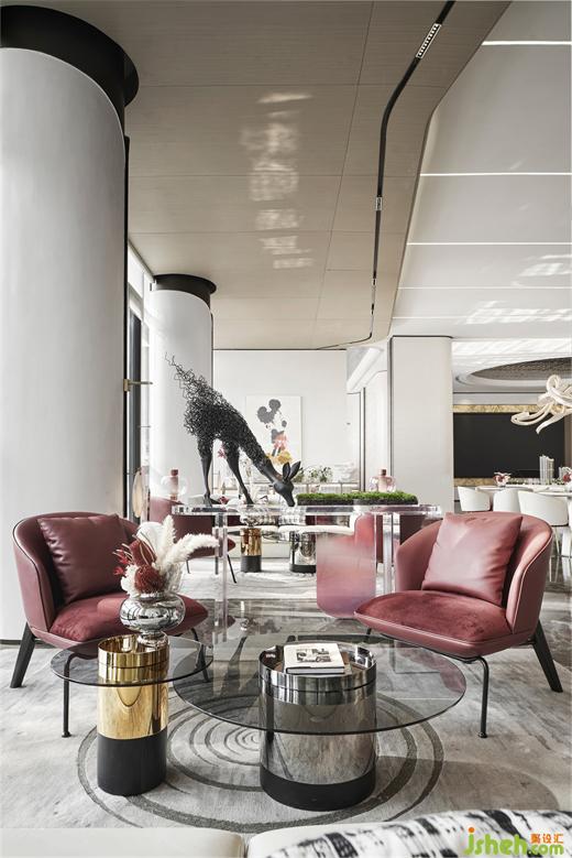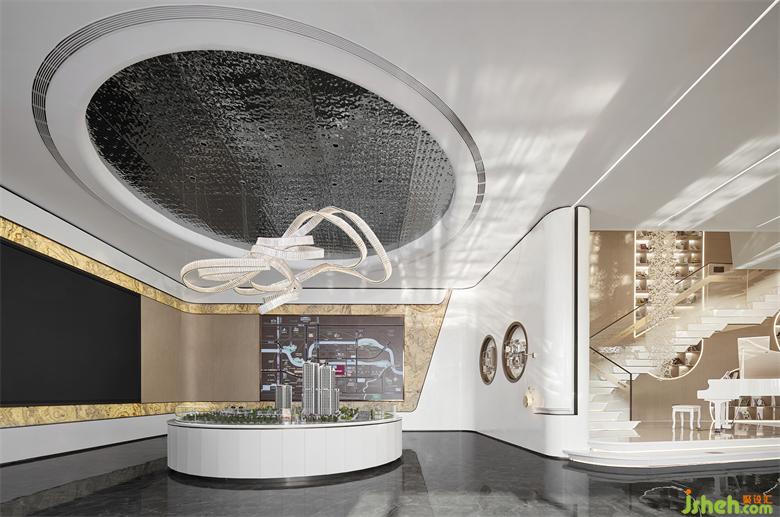 售楼处设计师基于产品要弱化商业氛围的要求,根据载地性寻找具有代表性的元素及形体以体现本地文化,立足于打造一个轻盈、灵动的现代艺术空间。