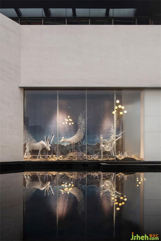 户外橱窗的灵鹿,延续长嘉汇的标志IP,给人以祥和与自然。引领人们来到室内,同时,作为户外的昭示,凸显奢华与气度。