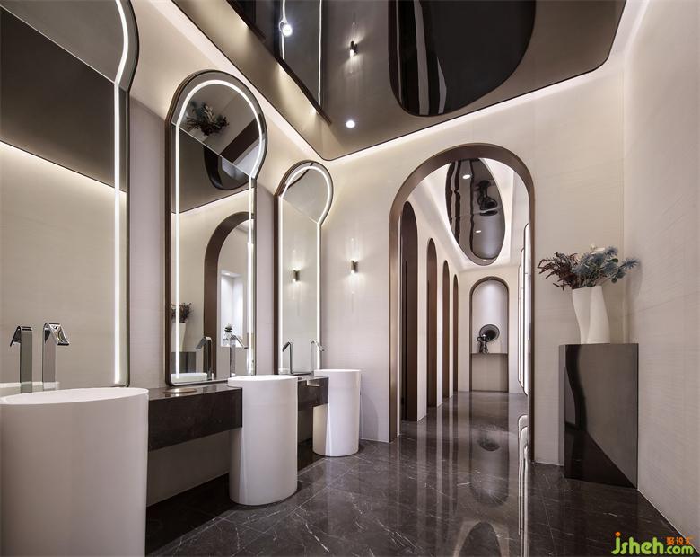 通往盥洗间的道路,也如同一个一个的奇点般,光斑闪烁,利用足够简约的视觉冲击感,给空间绝对是神秘感。犹如那经典的台词,“人类一个简单的念头可以创造城市。一个念头可以改变世界”。
