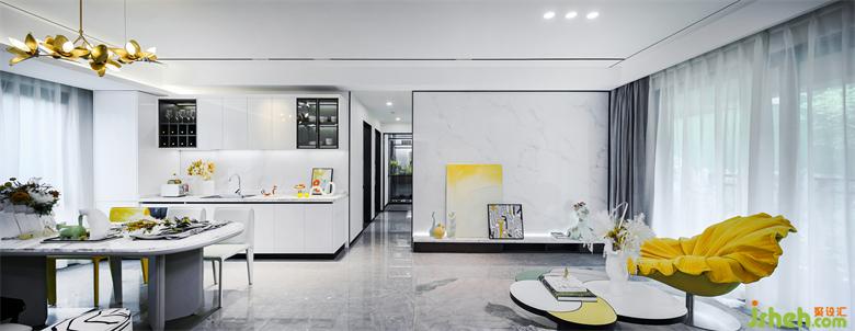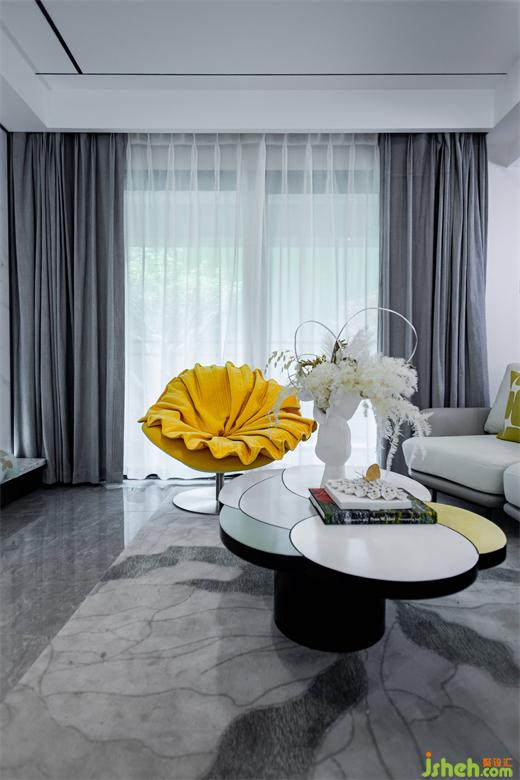 会客厅的时尚装饰中带着柔和与灵动,几何图形的地毯与光洁的地面相映衬。洋房设计素雅洁白的大块颜色明快简洁,力量中融合了一丝典雅的气息。