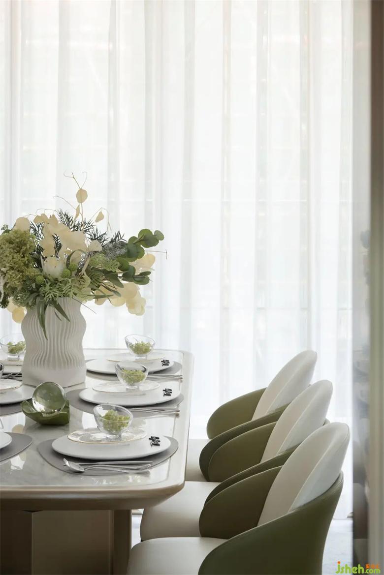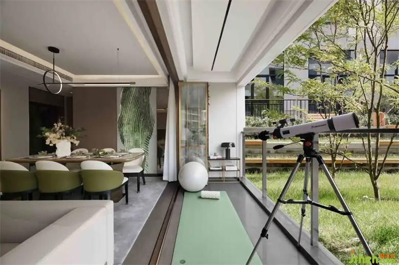 植物的巧妙点缀,营造出一种淡淡的优雅感,样板房设计包容、轻松的氛围。餐厅打造轻食的生活氛围感,景观阳台,设置瑜伽区,从而表达出健康生活的本质。