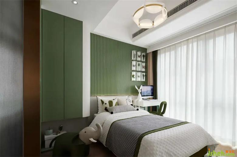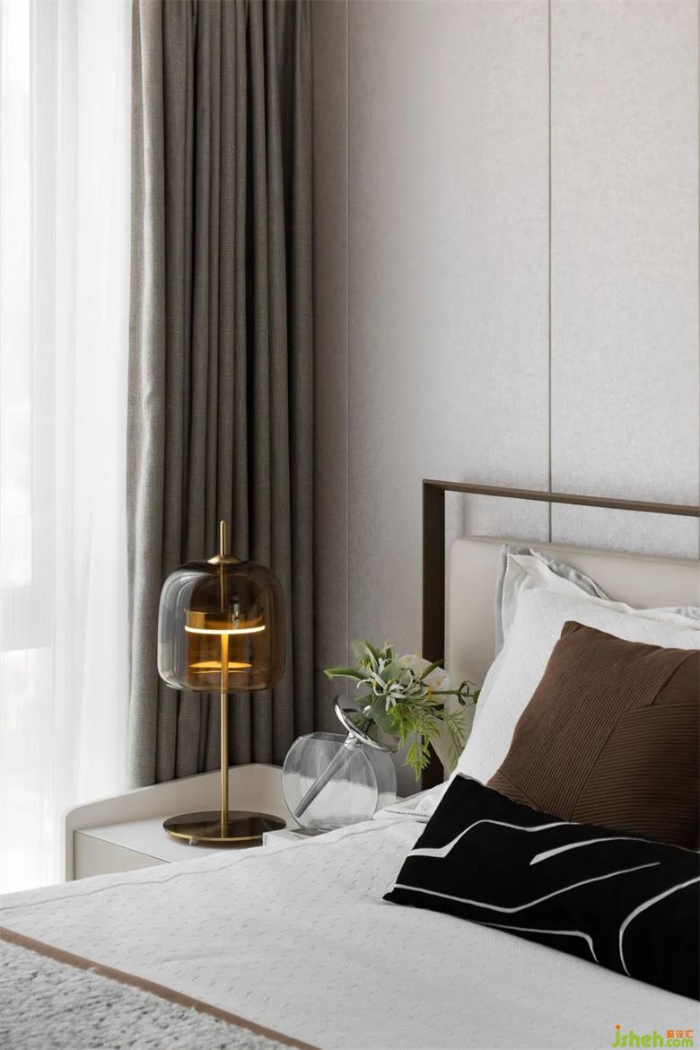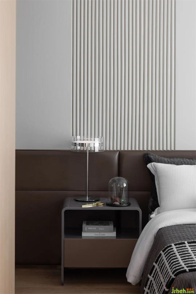 次卧以线条的变化给空间带来了律动感,色彩的升级,也赋予这个空间更为祥和的寂静感。样板房设计以小见大,以方寸天地见万物新生。