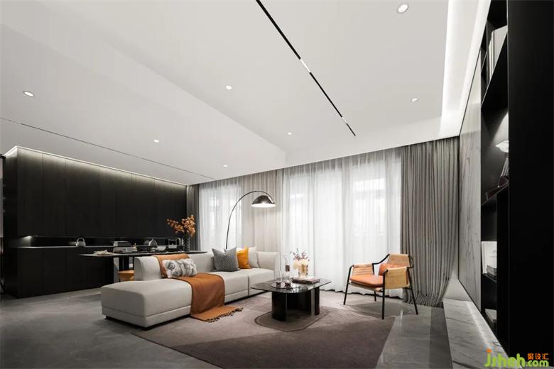 注重和谐的视觉感官,样板房设计以深色调与灰色为主调,配合爱马仕橙作为点缀,打造沉稳大气却不失暖意的“家”。是无尽艺术与意向,纳藏生活的哲学意趣。简洁干练的线条,平衡光影秩序的同时,又营造纯粹、宁静、诗意的居住环境。