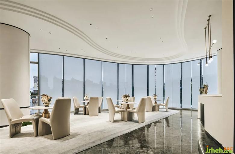 280度绝佳的景观面,是需要给重要的人欣赏,将室外的美景,搬入室内。重庆售楼处设计营造整体统一的目光聚焦再现,赋予其和建筑主体相似的叠加层次感。同时也将现代设计穿插构筑在充满蓬勃活力的自然下,妙趣横生。