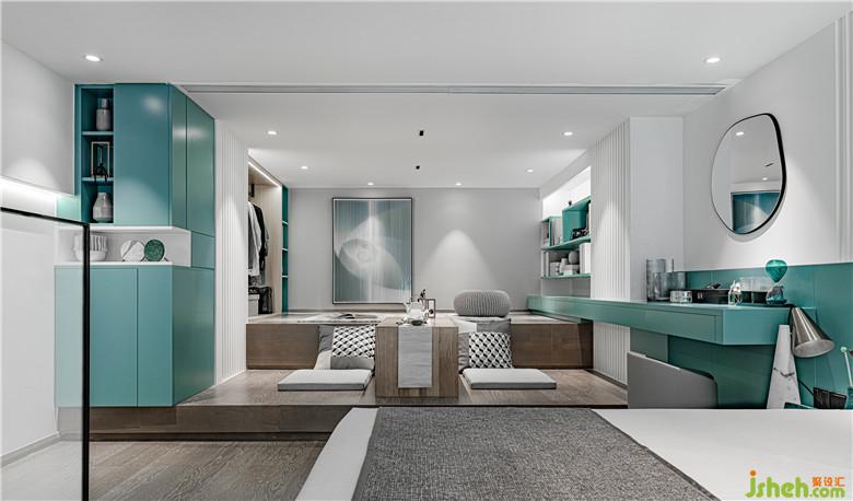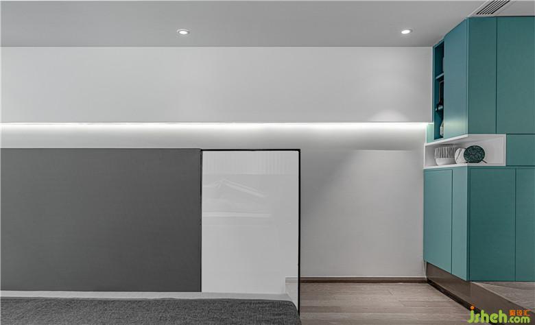 抬高两层级差,休闲区结合衣帽间、运动、休憩等多样功能,既提高了空间的利用率,显得活泼有趣。“刚刚好”的空间占比,提供的是徜徉、漫步、沉思和专注的自由。