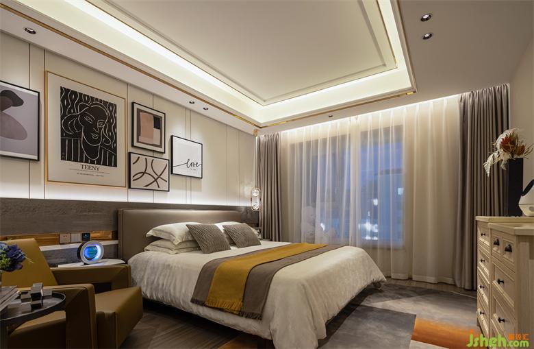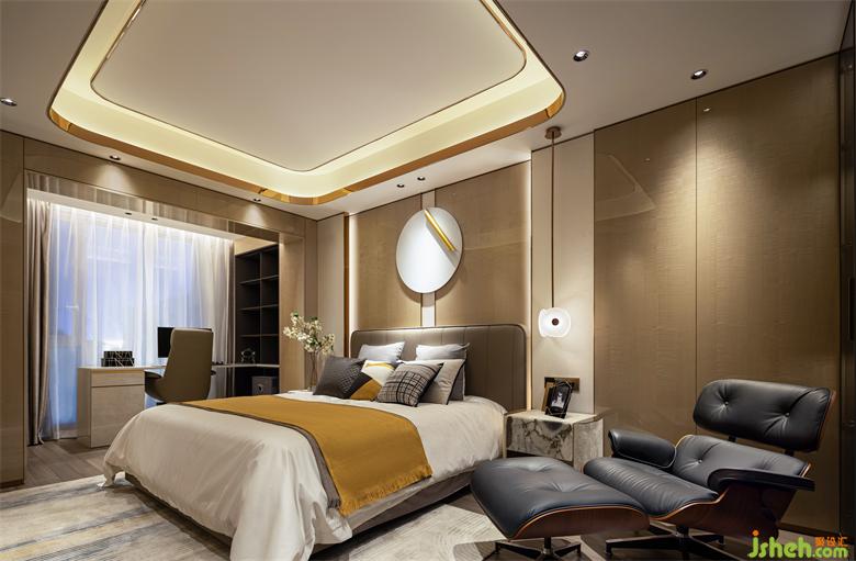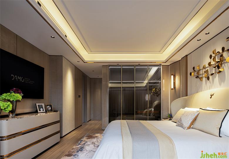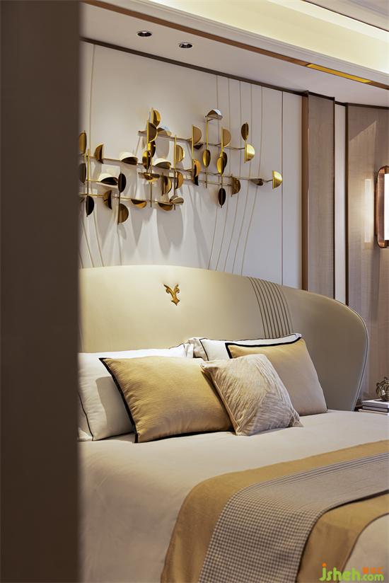 溫潤的色調,與定制化產品,貫穿於臥室空間。大平层装修设计每一個臥室都有著各自的個性,兼容並蓄中表達著空間的包容與生命力。